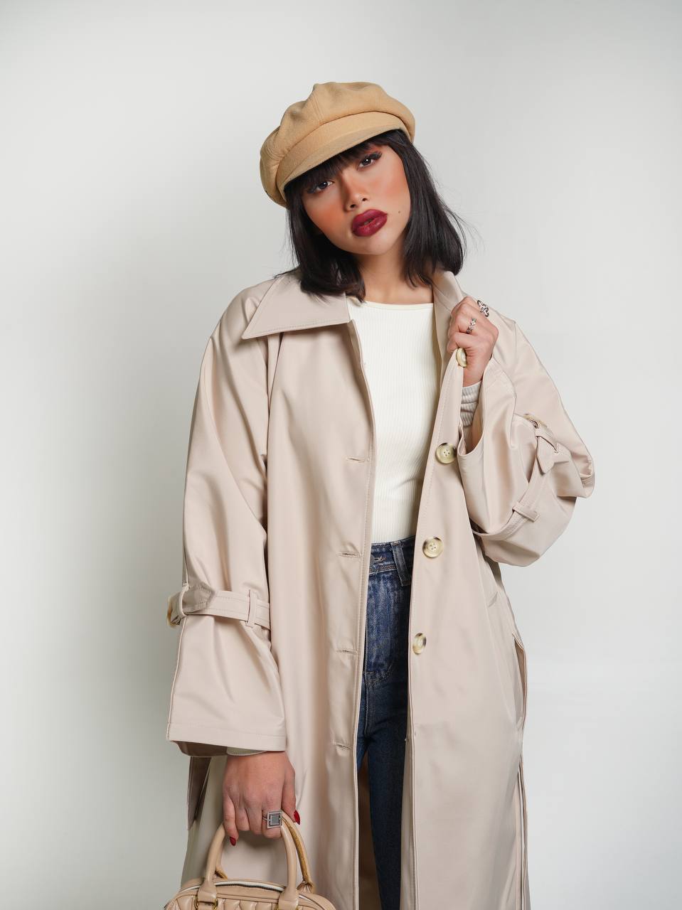 بارانی زنانه یقه خرگوشی سانتانا کج راه فریسایز